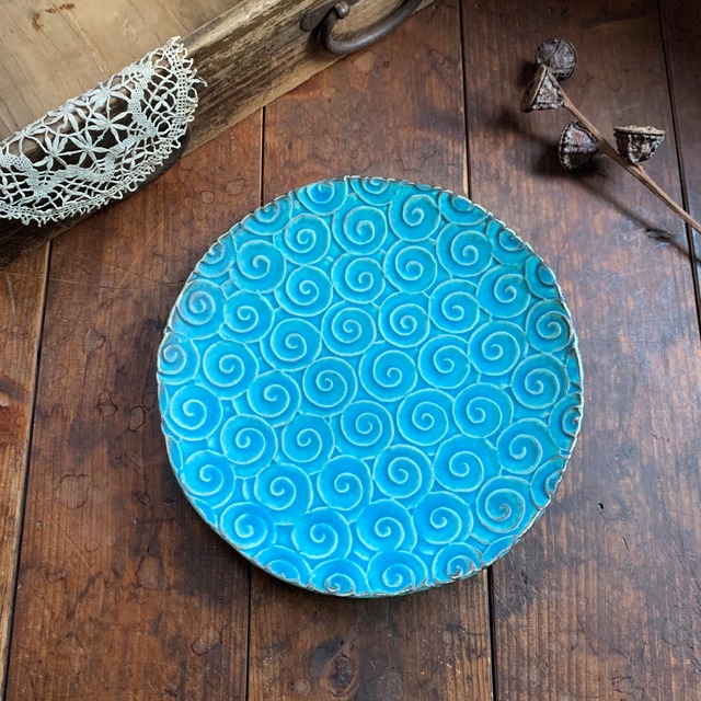 【笠間焼】 佐藤りぢゅう うずまき大皿 21cm ターコイズ