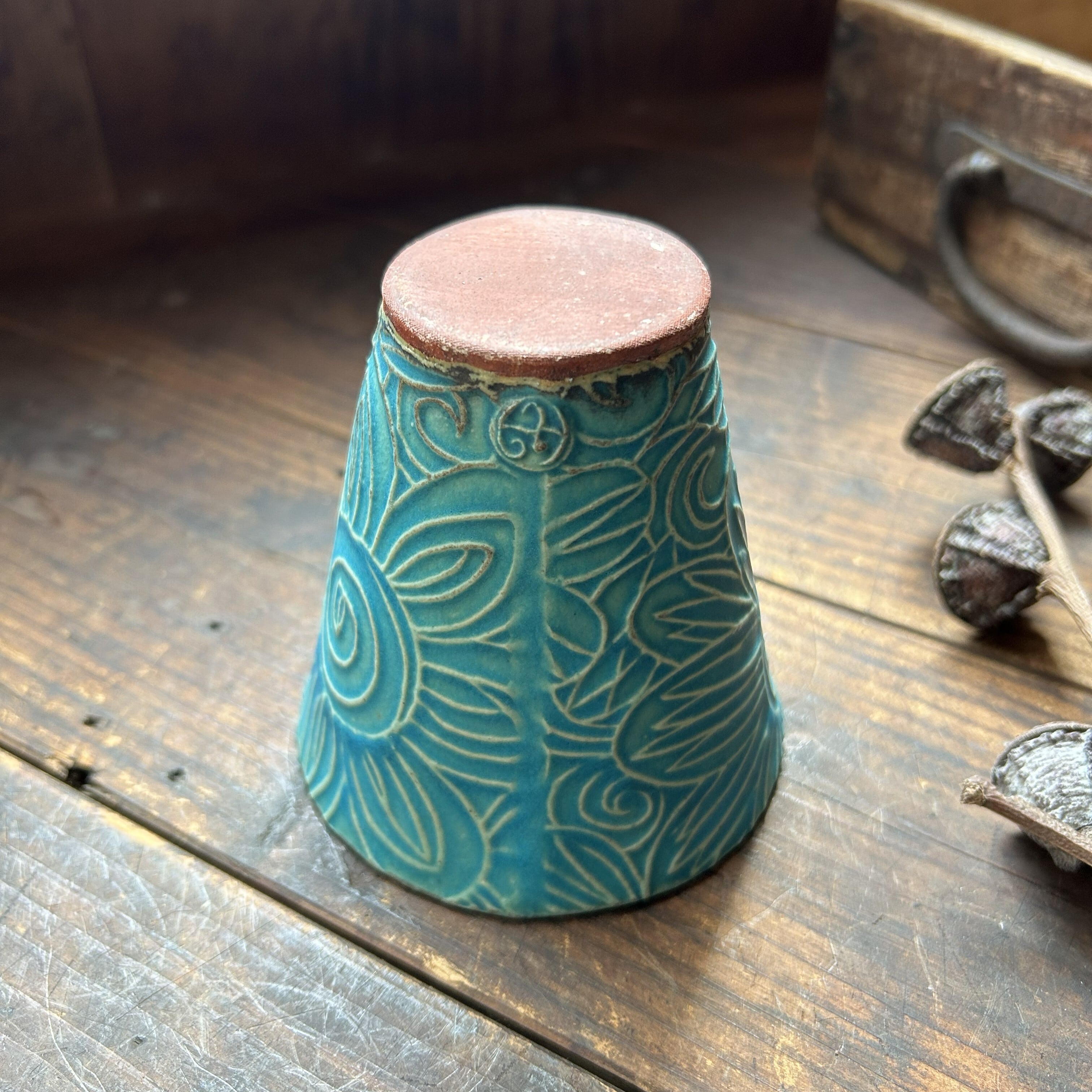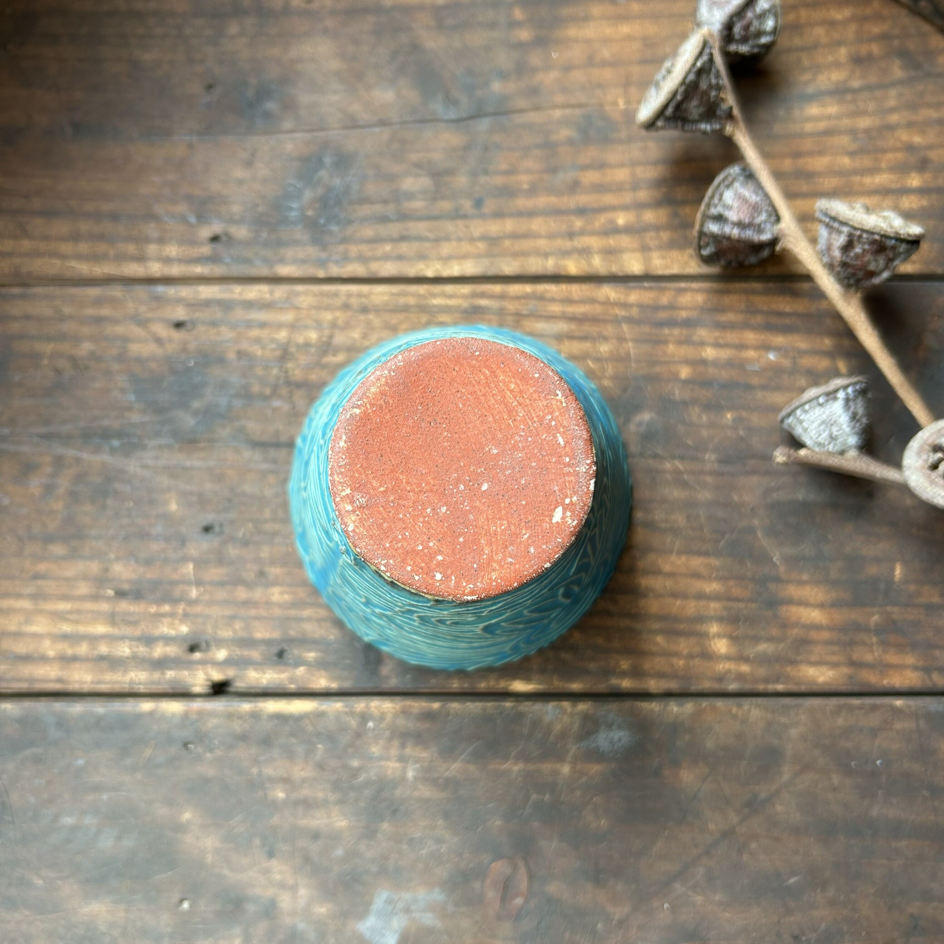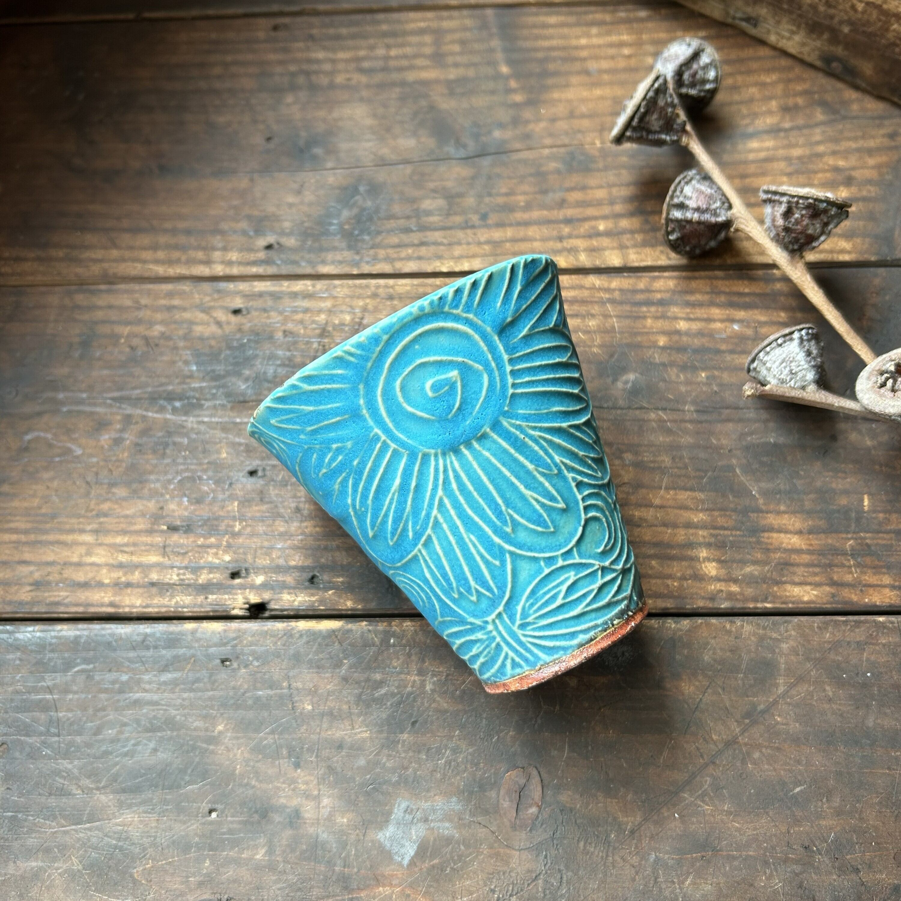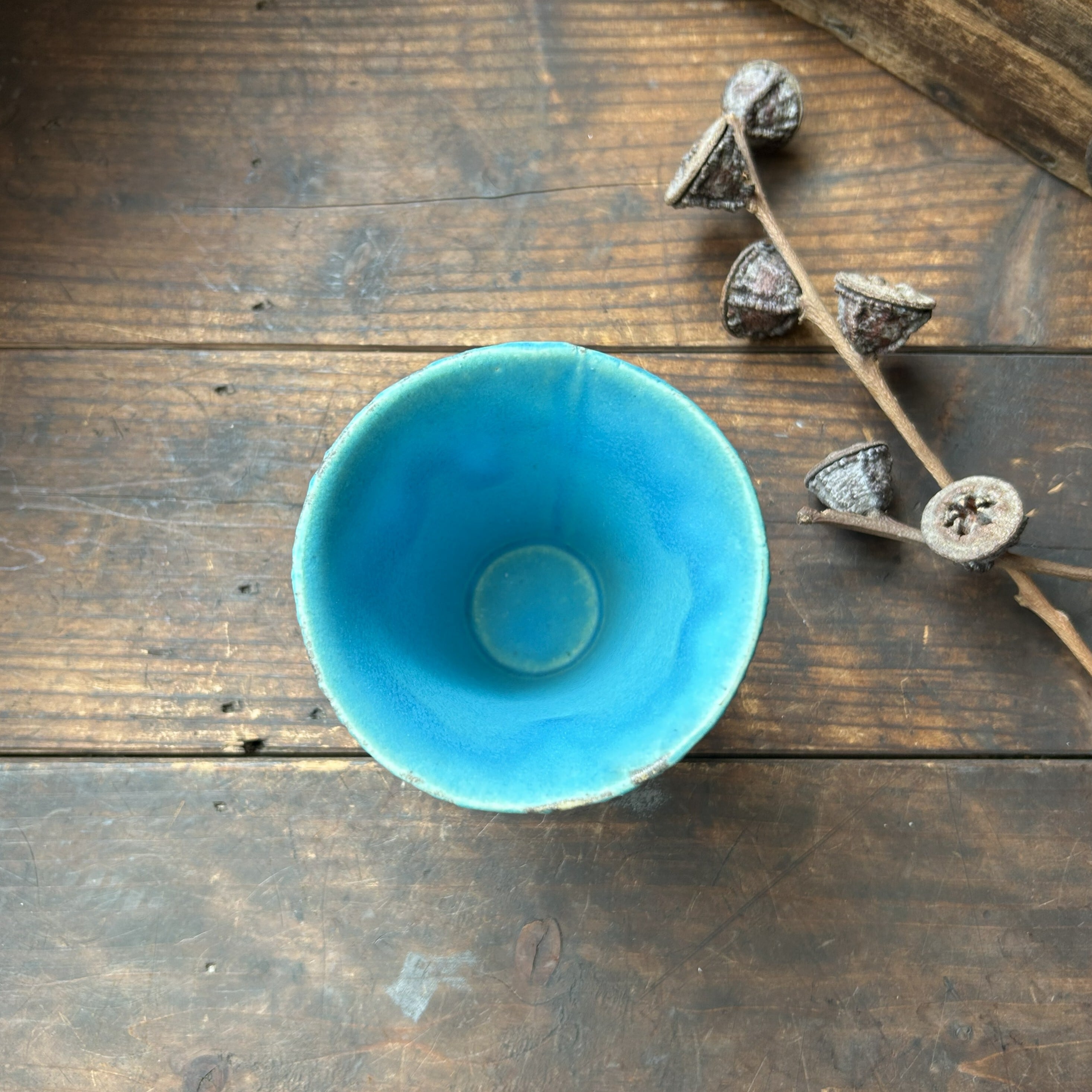 【笠間焼】 佐藤りぢゅう フリーカップ(フラワー)9cm ターコイズ