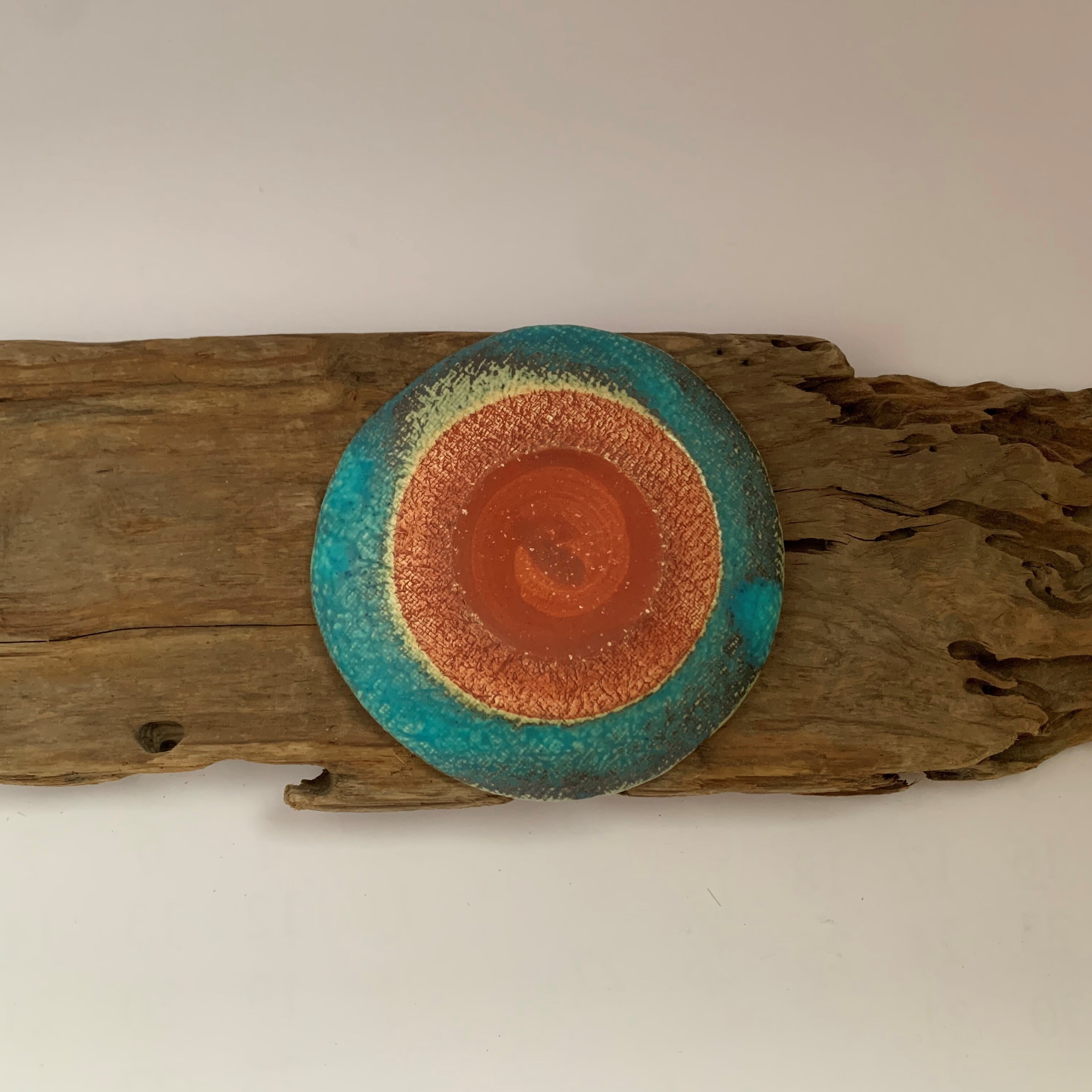 きれいなターコイズブルーに個性豊かな刻文の入った小皿です。取り皿として使ったり、お菓子を乗せたりしても素敵ですね。テーブルが爽やかになりますよ。