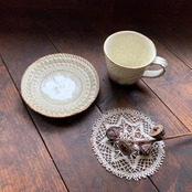 別売のドットマグカップでカップ&ソーサーになります。写真5、6枚目はセットした時のイメージ画像です。セット売りではございませんのでご注意ください。