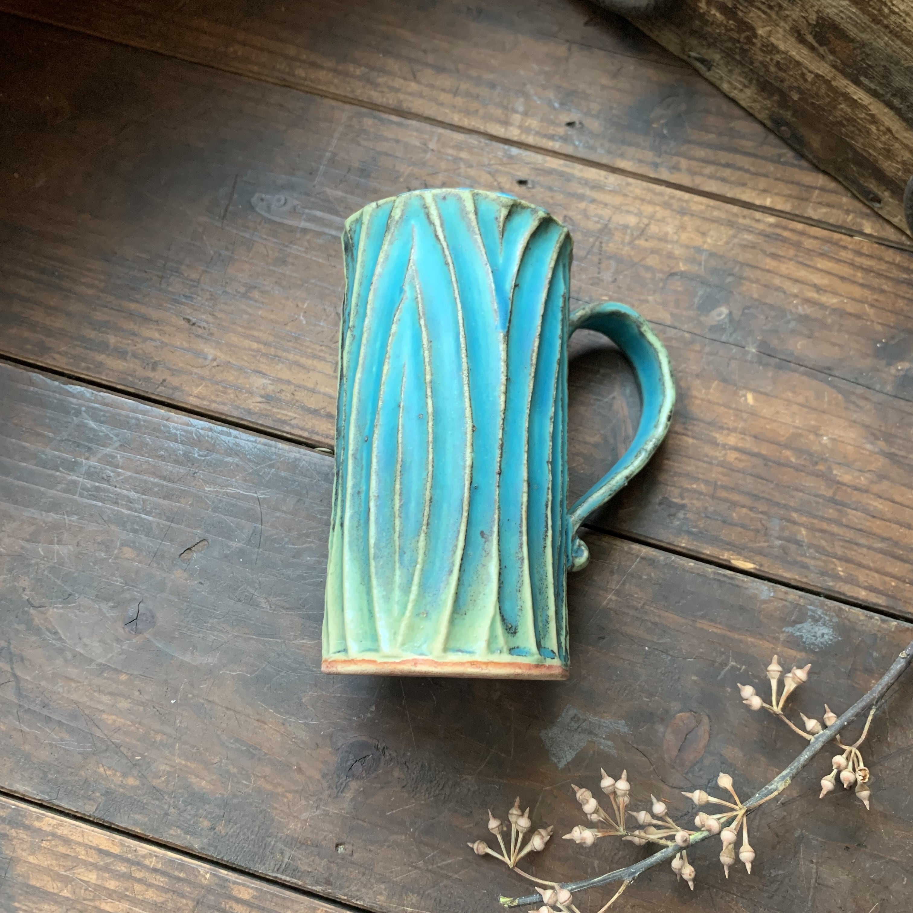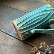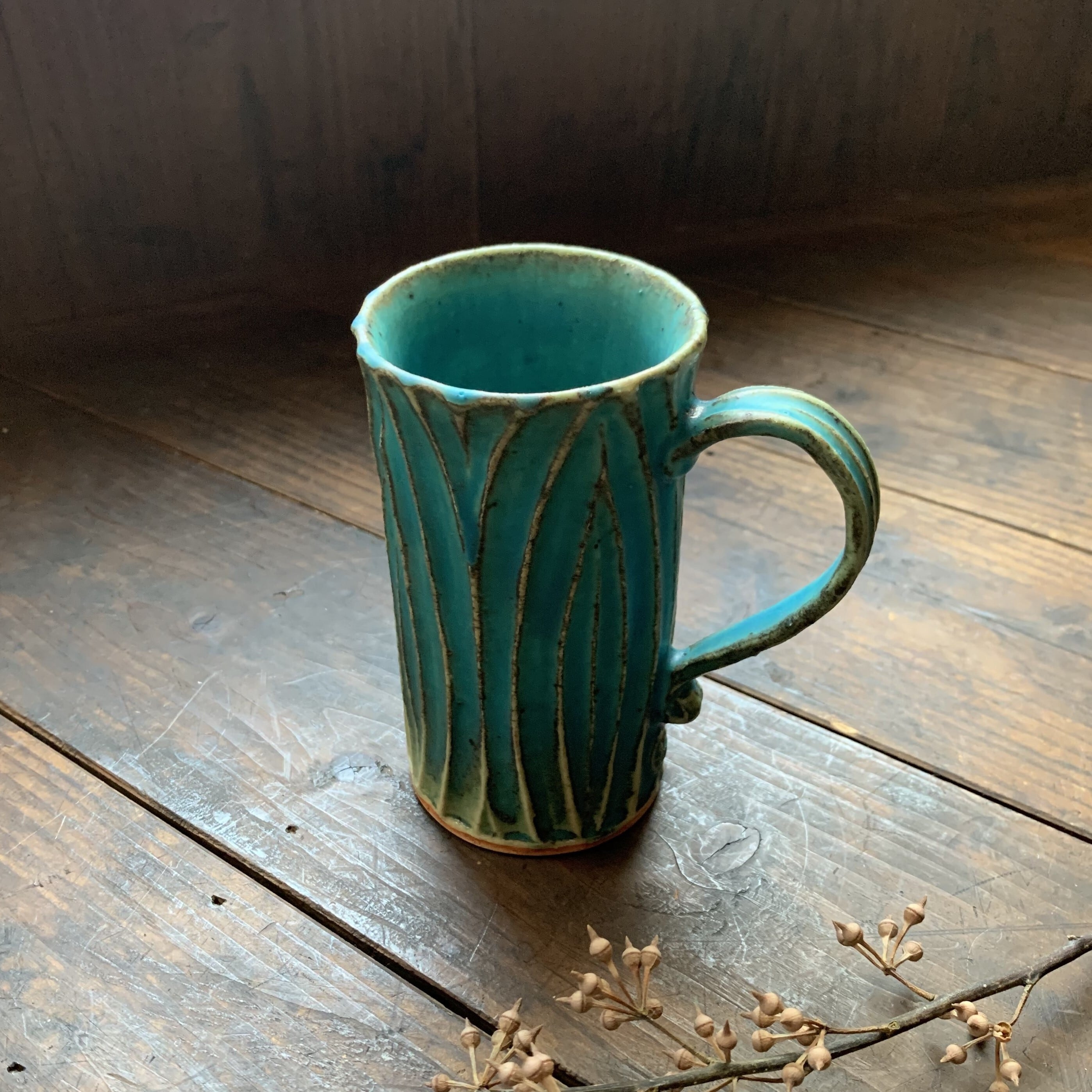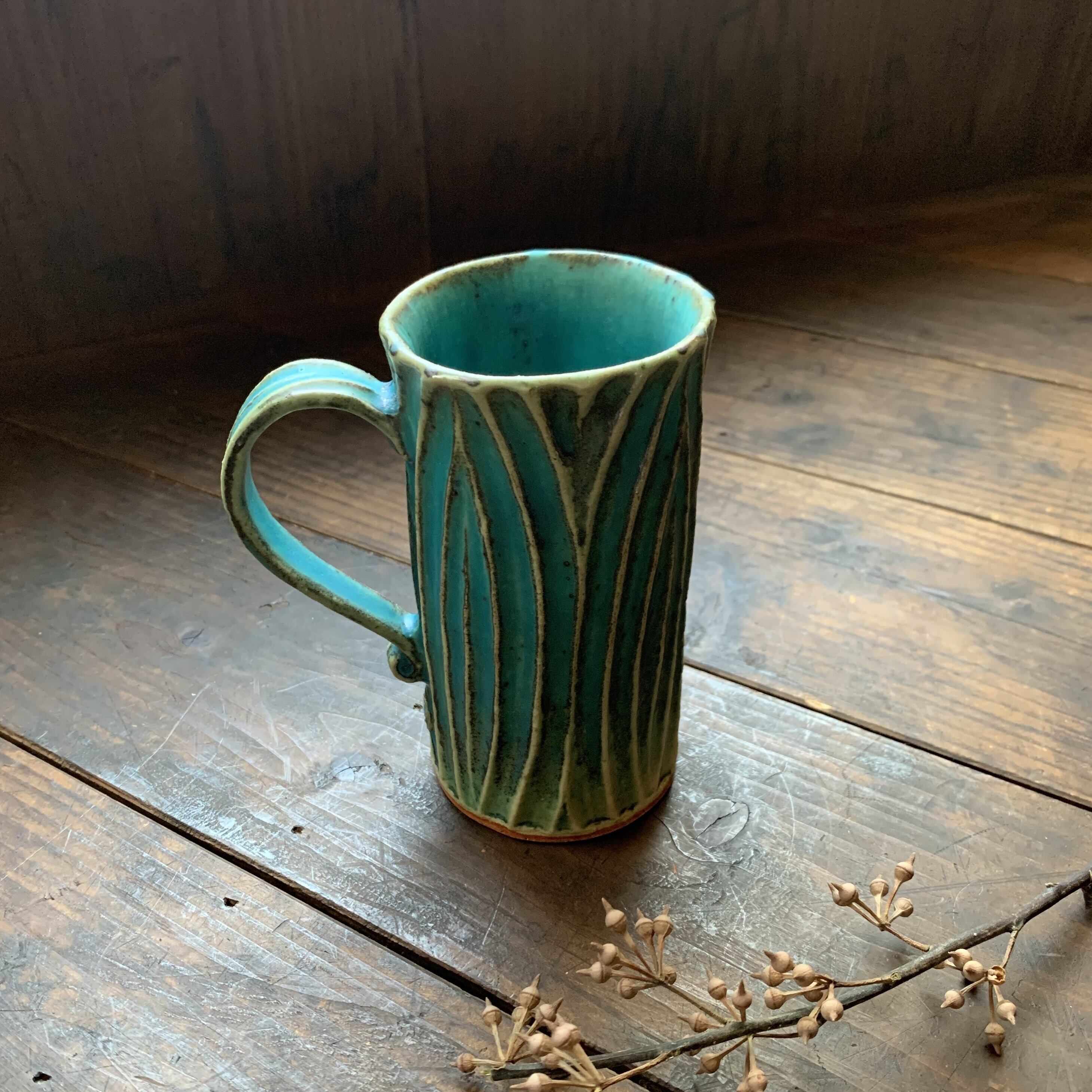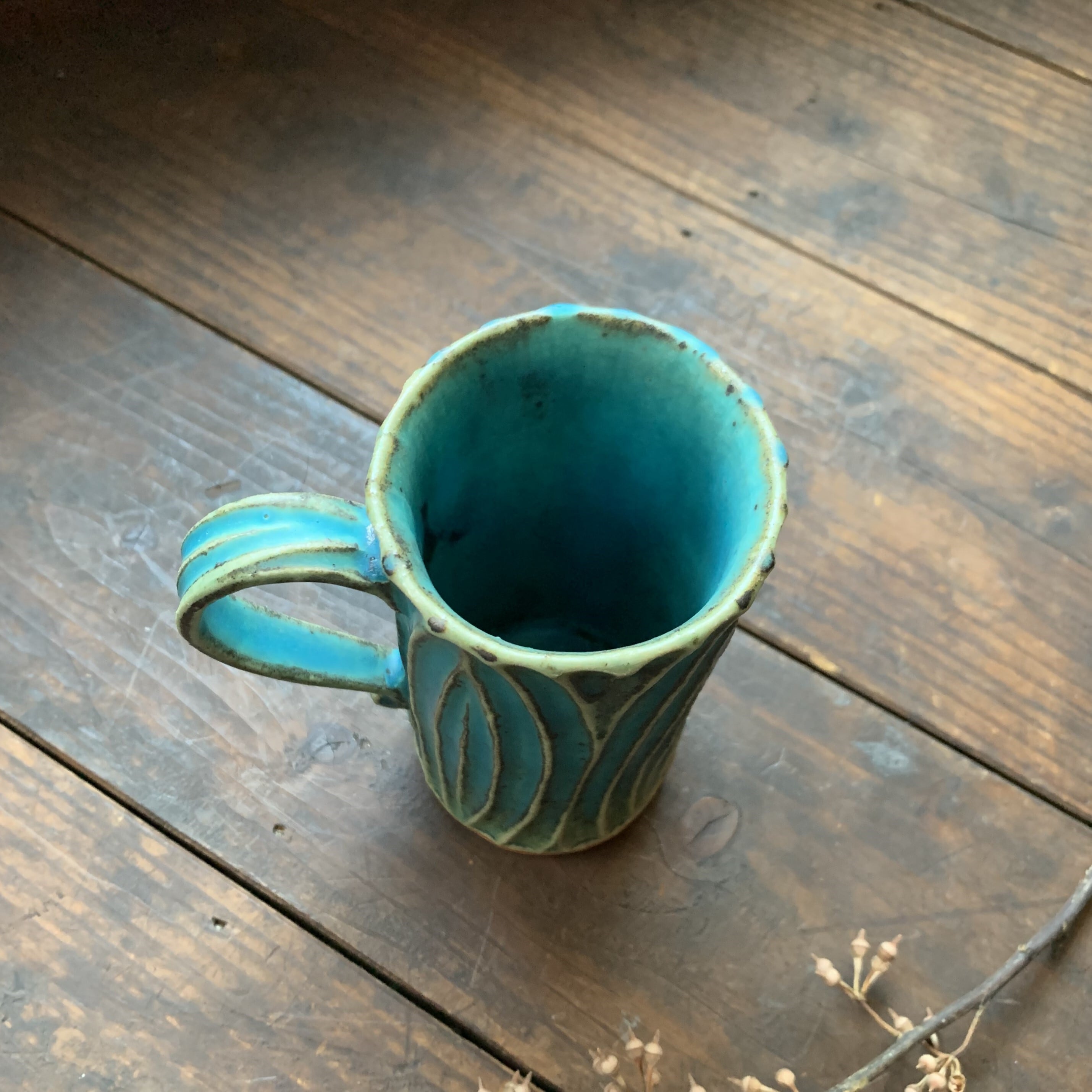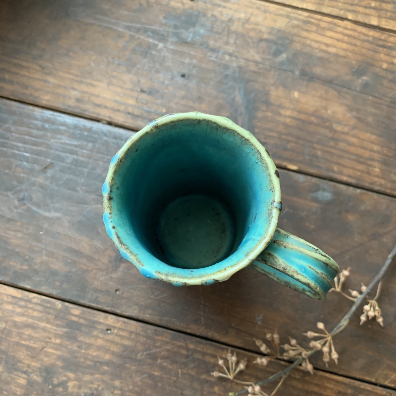 【笠間焼】佐藤りぢゅう レリーフマグカップ(長) ターコイズ