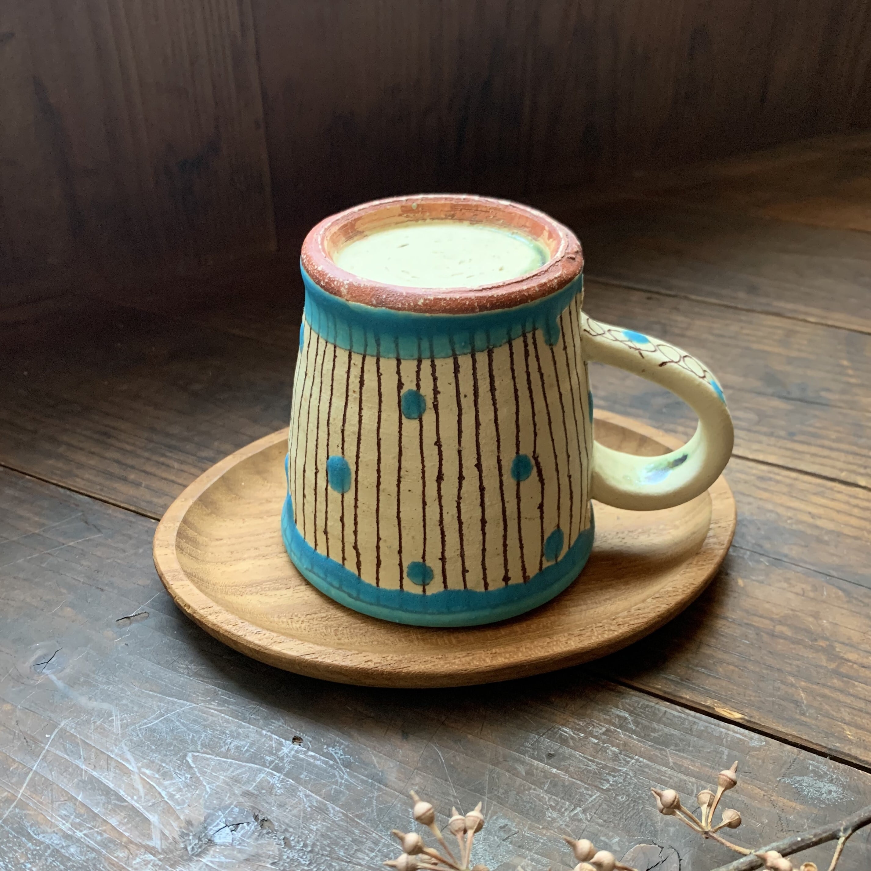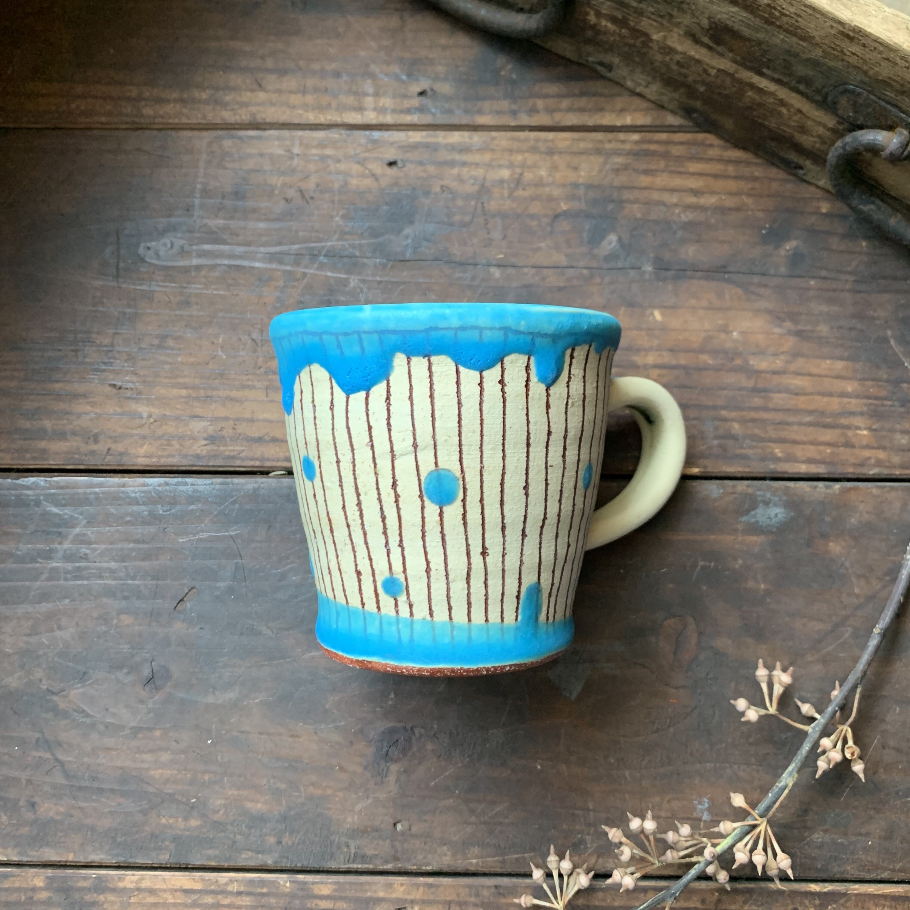 【笠間焼】佐藤りぢゅう 青釉マグカップ 鉄線絵