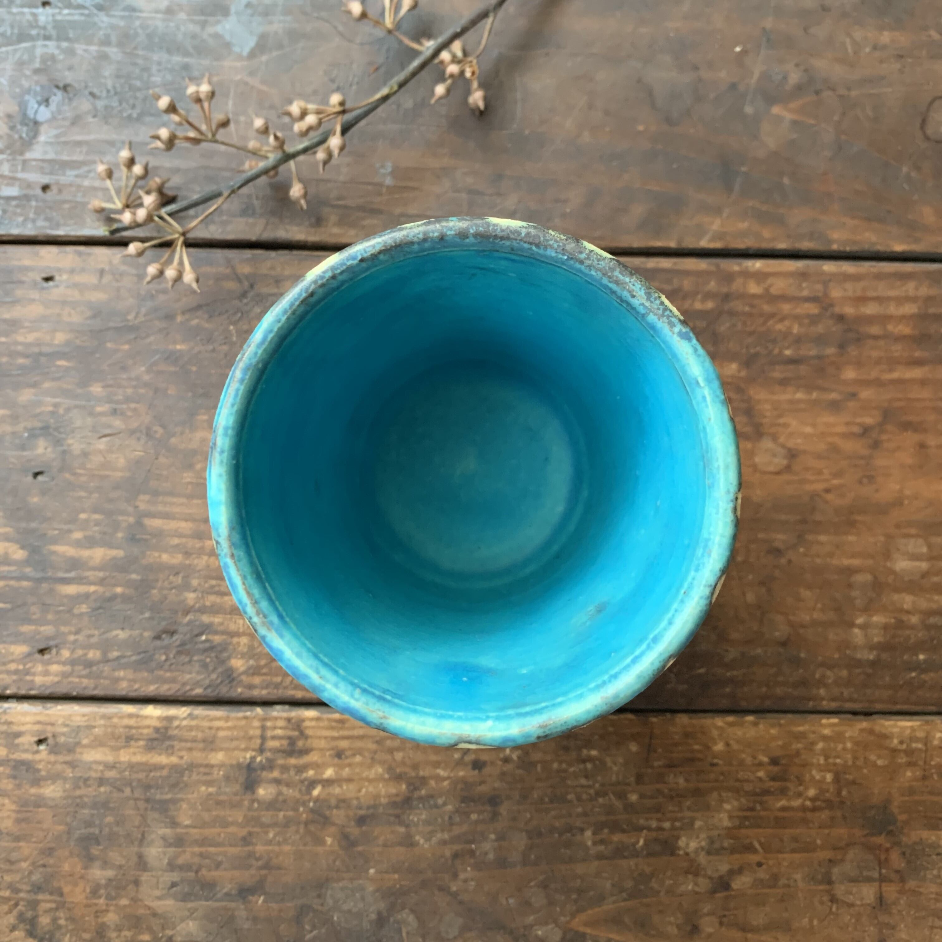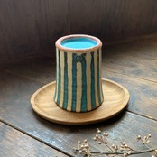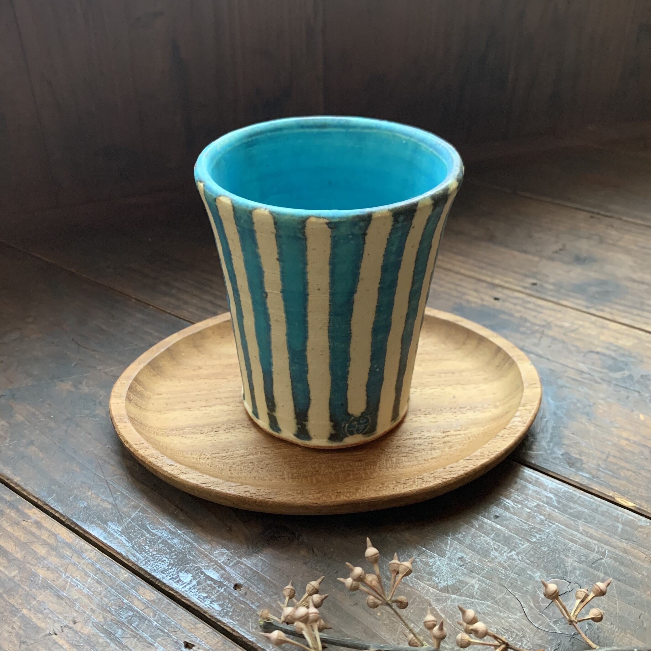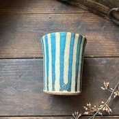 【笠間焼】佐藤りぢゅう 青釉白抜きフリーカップ ストライプ