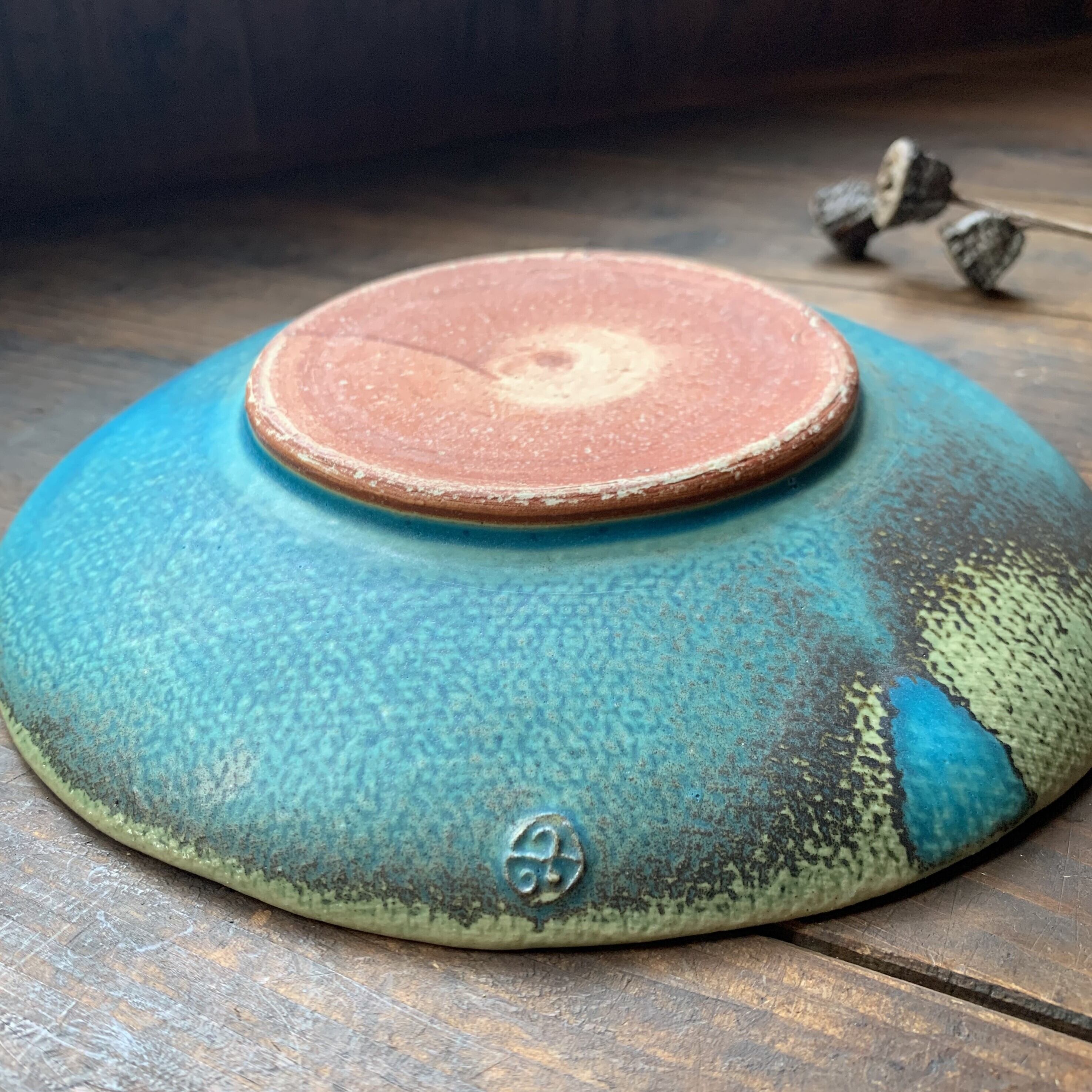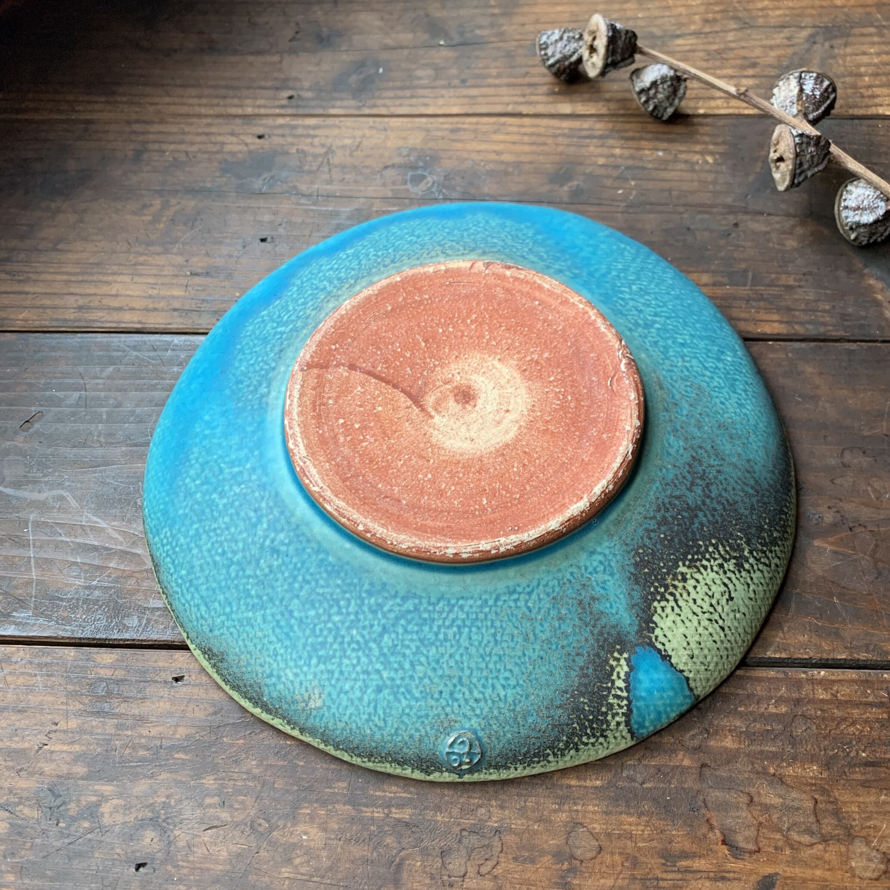 【笠間焼】佐藤りぢゅう 唐草大皿 21cm ターコイズ