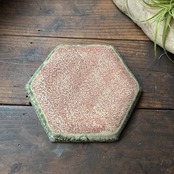 【笠間焼】佐藤りぢゅう 唐草六角皿 17cm 緑灰釉 光沢あり