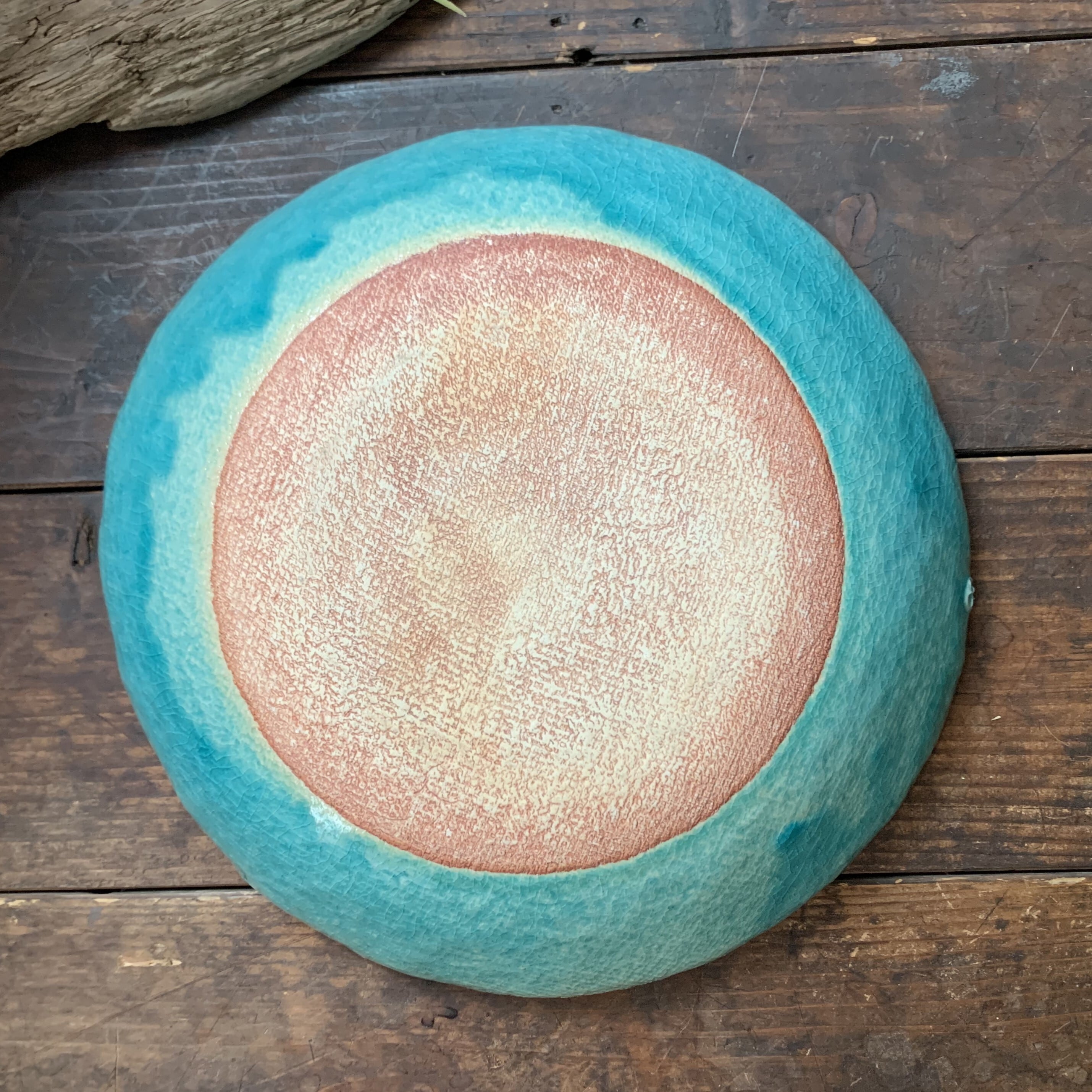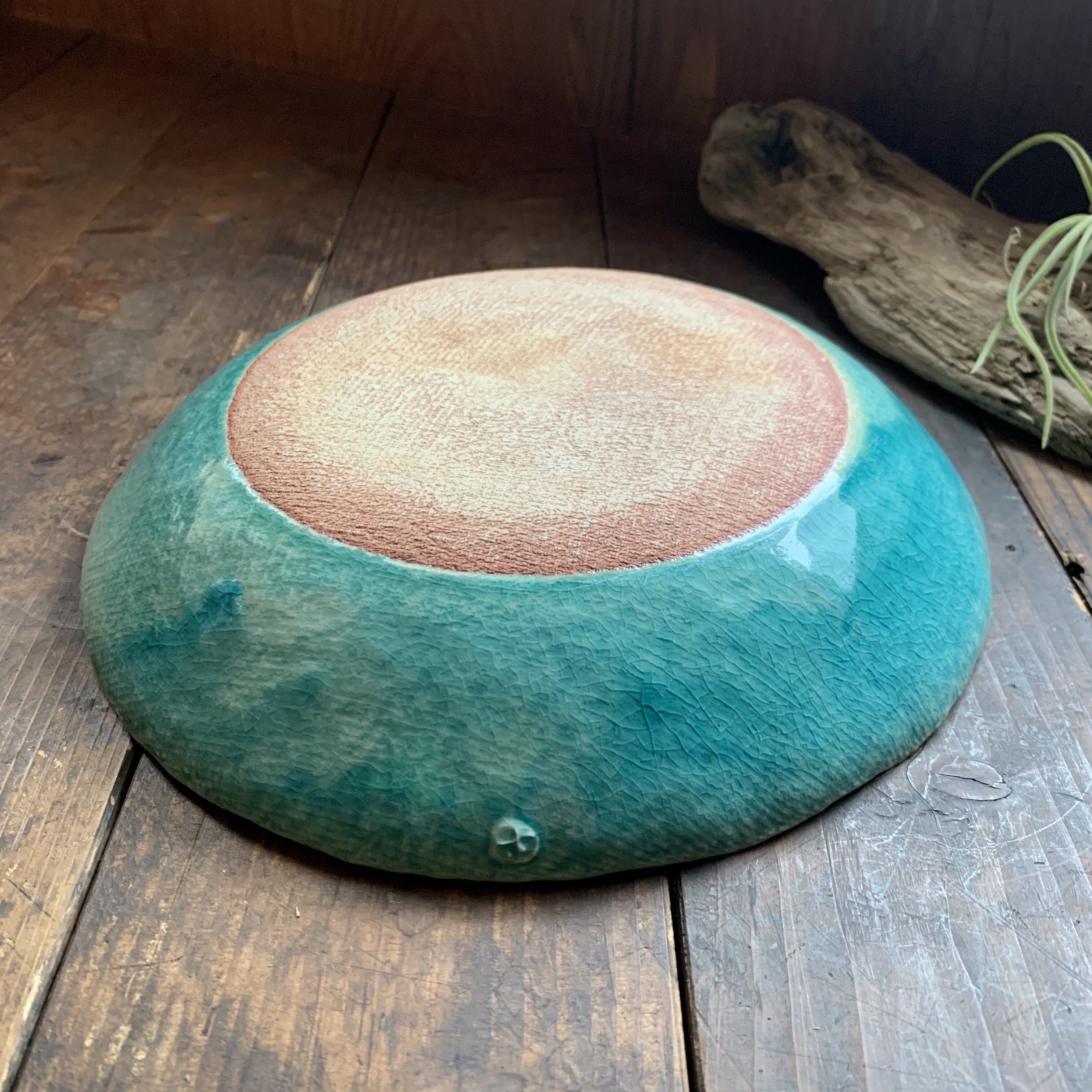 【笠間焼】佐藤りぢゅう 大鉢(青海波)24.5 cm 光沢ターコイズ