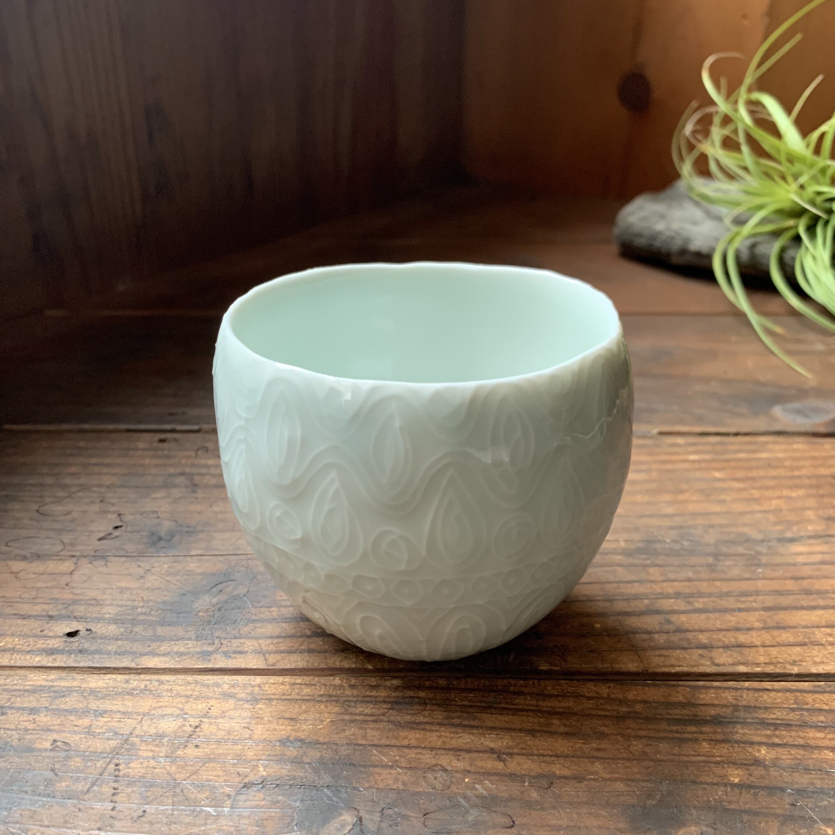 【笠間焼】佐藤りぢゅう 磁器フリーカップ 丸(うずまき・リーフ)6.5cm 白