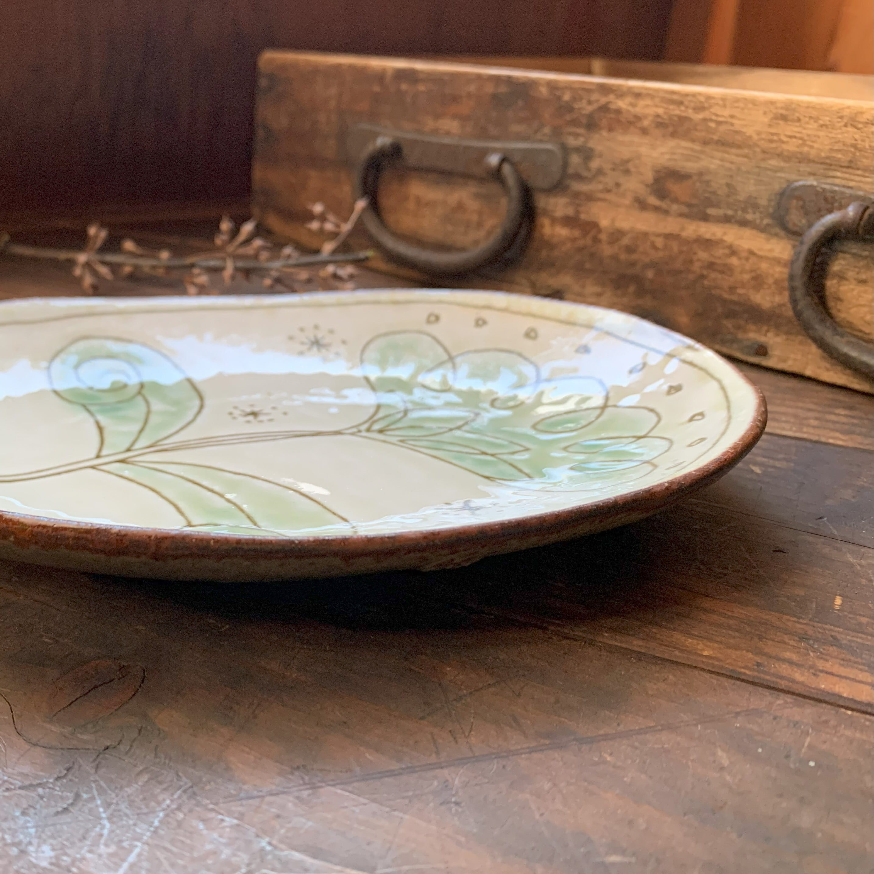 【笠間焼】佐藤りぢゅう 掻き落とし楕円皿(B)20cm 化粧