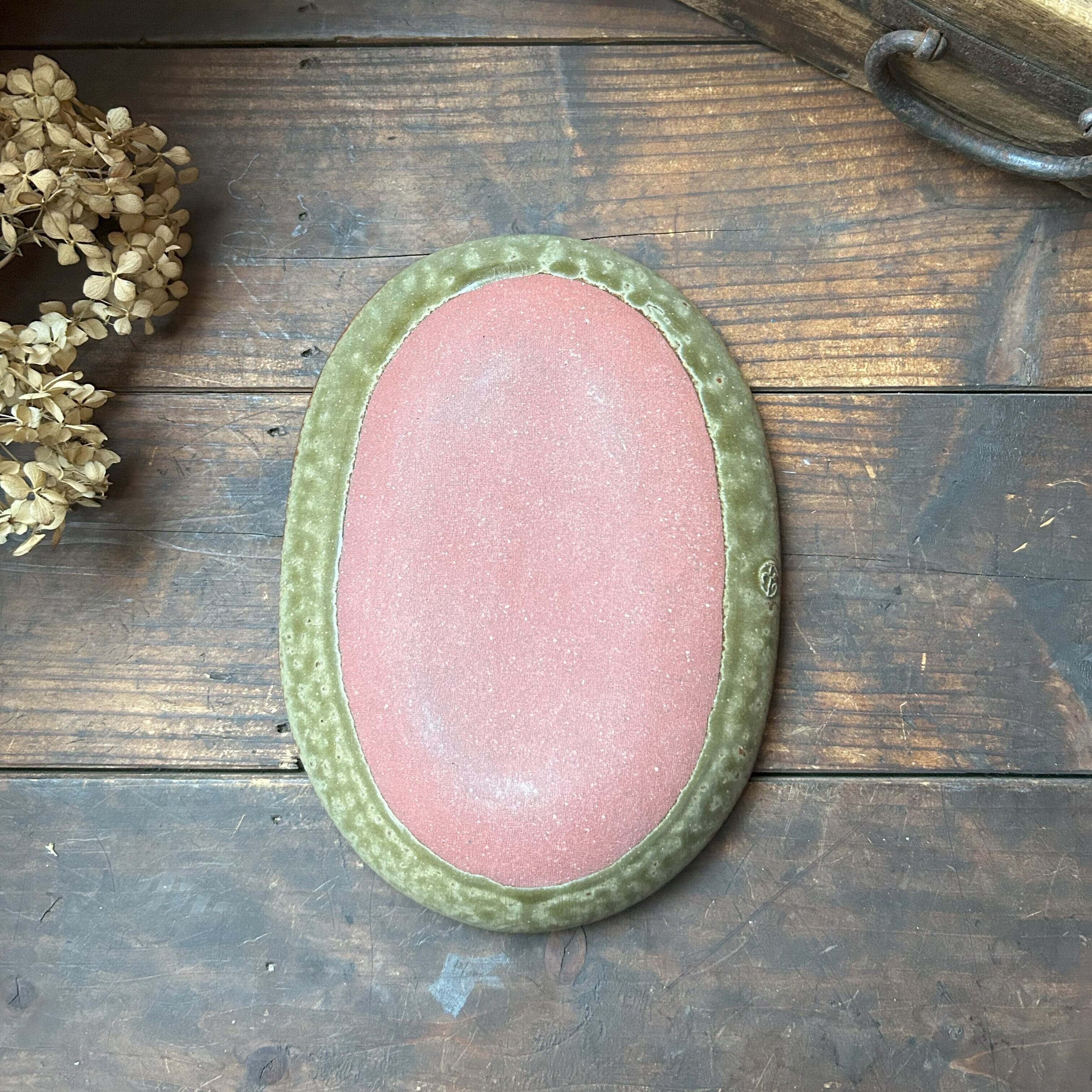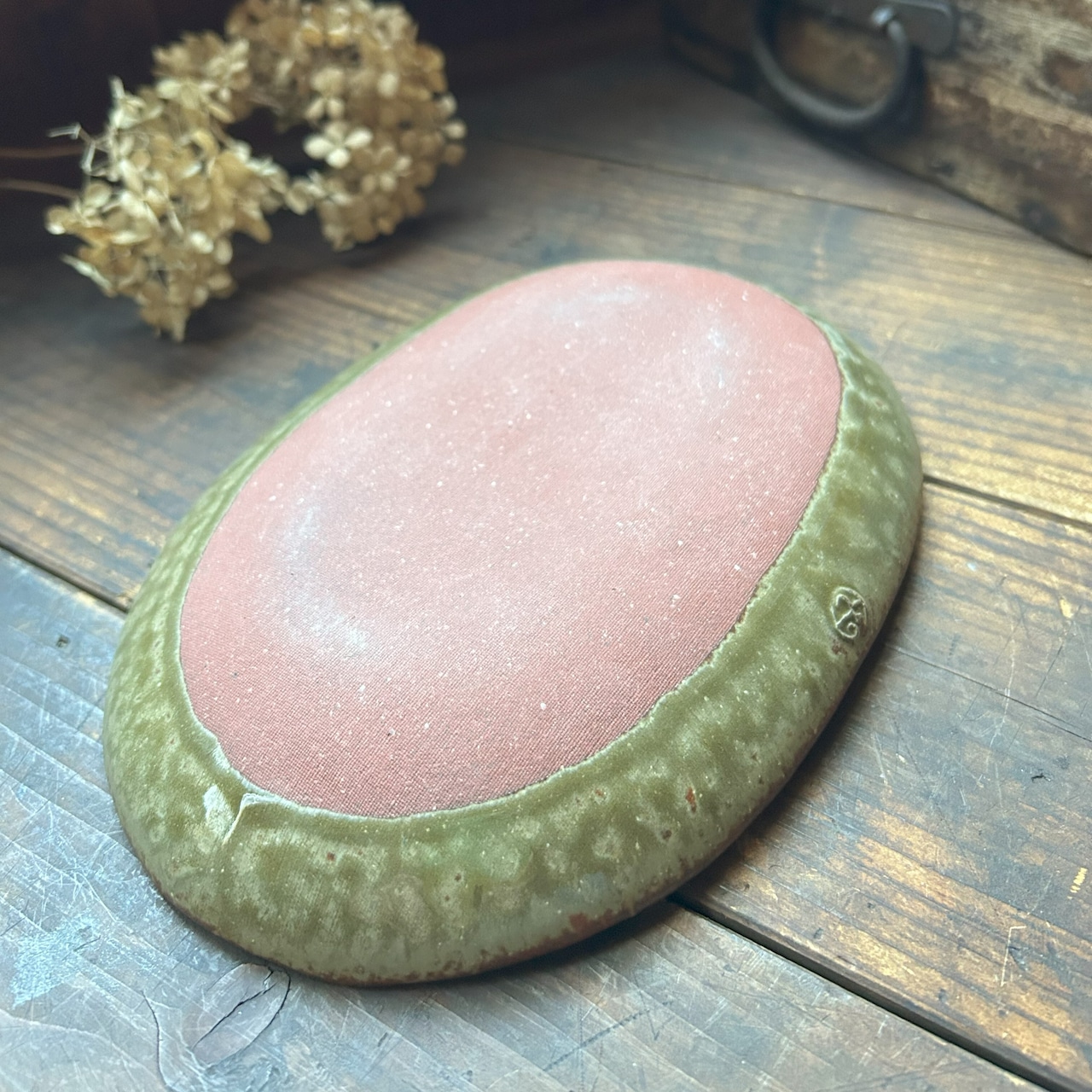 【笠間焼】佐藤りぢゅう 掻き落とし楕円皿(E)20cm 化粧